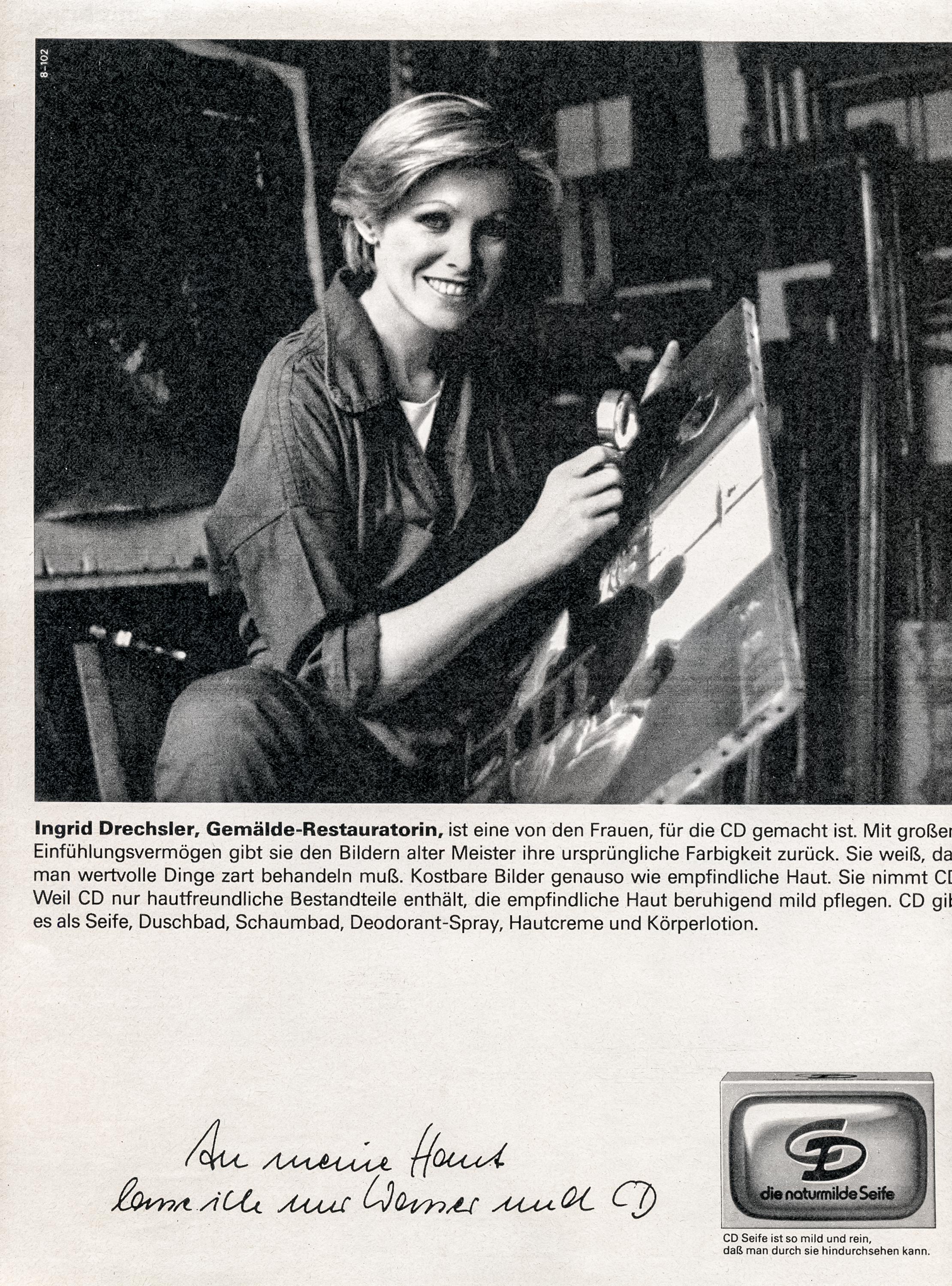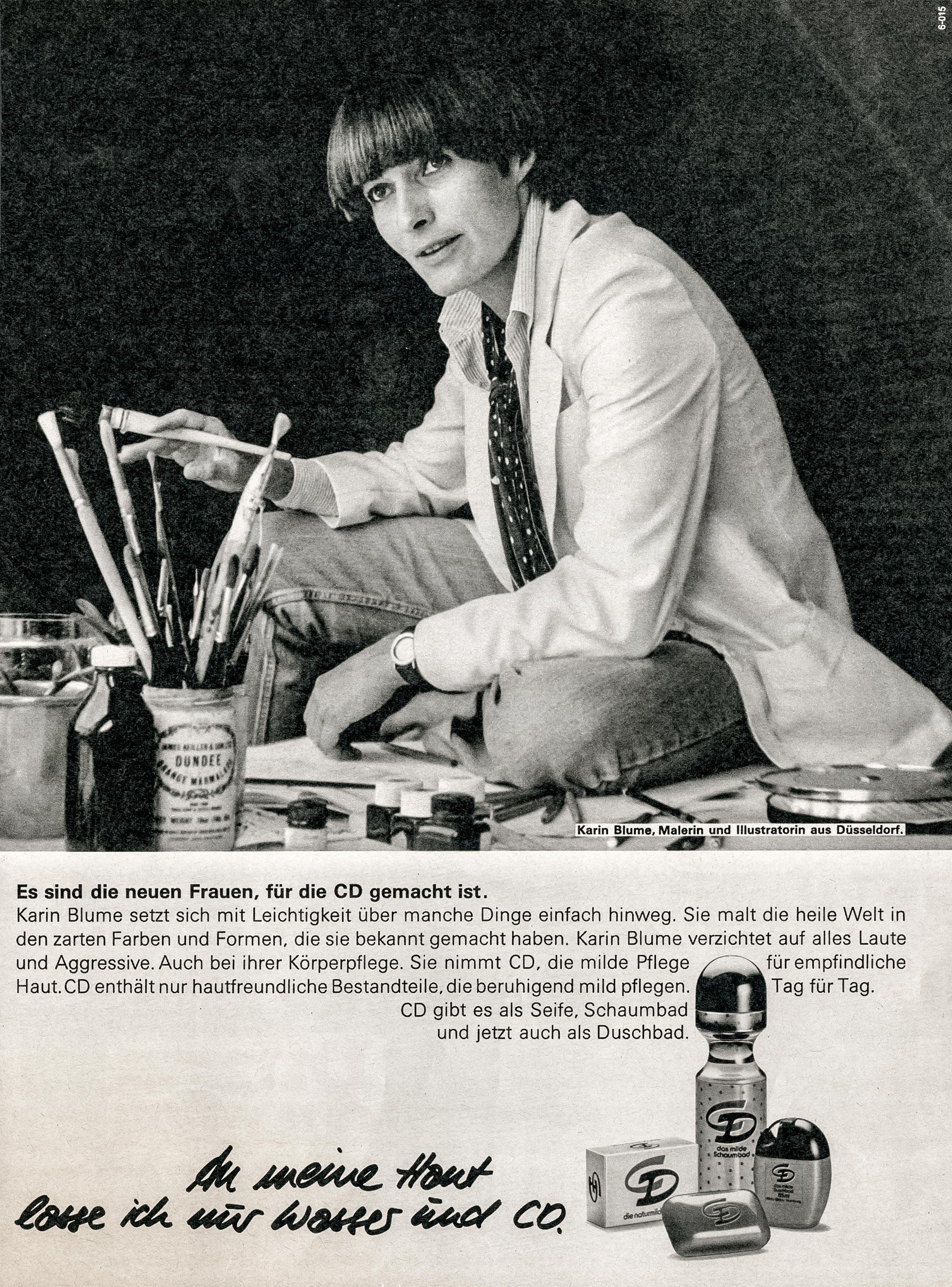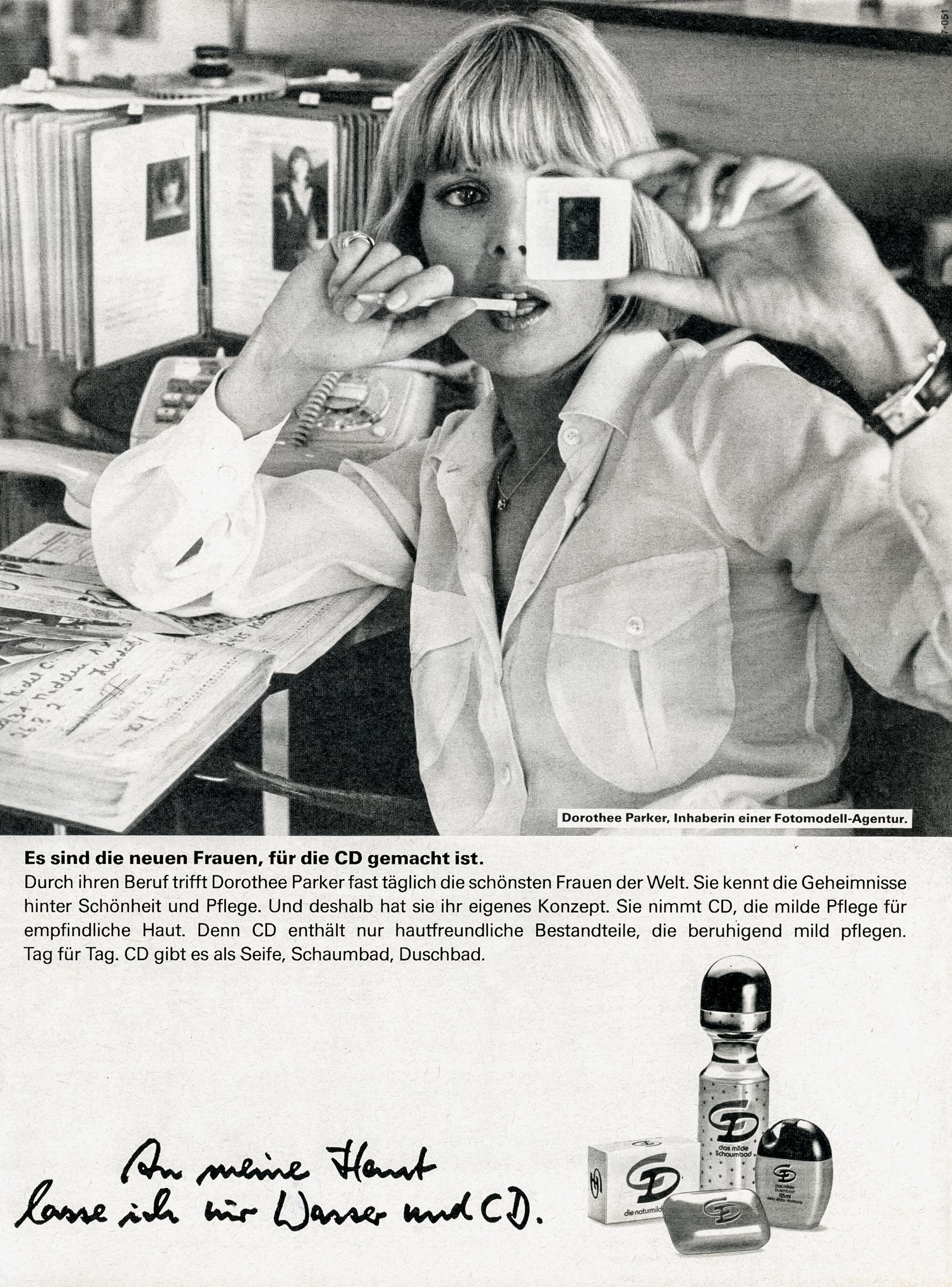 Konzerne gestalten mit ihren Marken unsere Gesellschaft mit. Der Slogan „An meine Haut lasse ich nur Wasser und CD“ verlässt die klassische Frauenrolle und wirbt für ein selbstständiges Frauenverständnis.